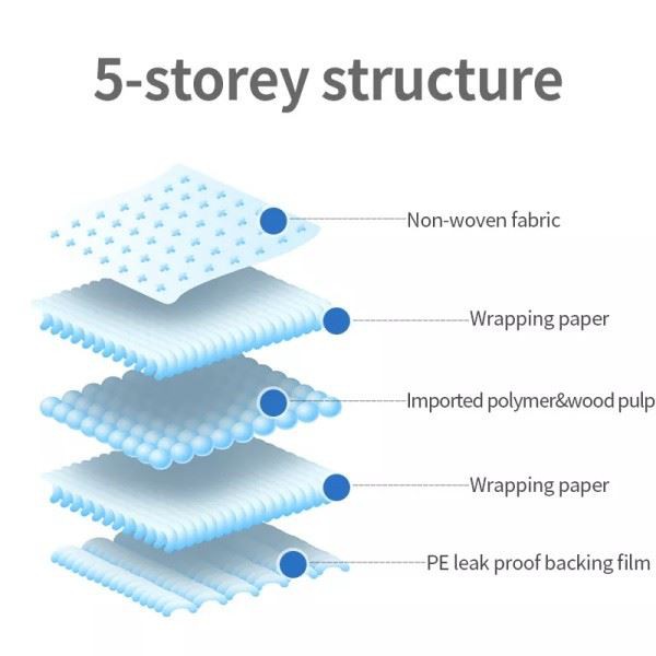 Soft Disposable Pet Pad: Five layers of water lock, layer by layer protection, dry surface, multiple guards more water lock.